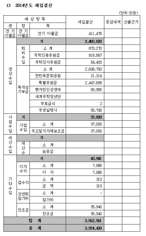 [공지] 2014년 세입·세출결산