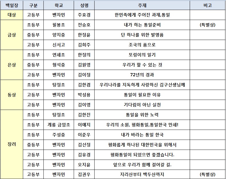 [백일장 수상자 명단]