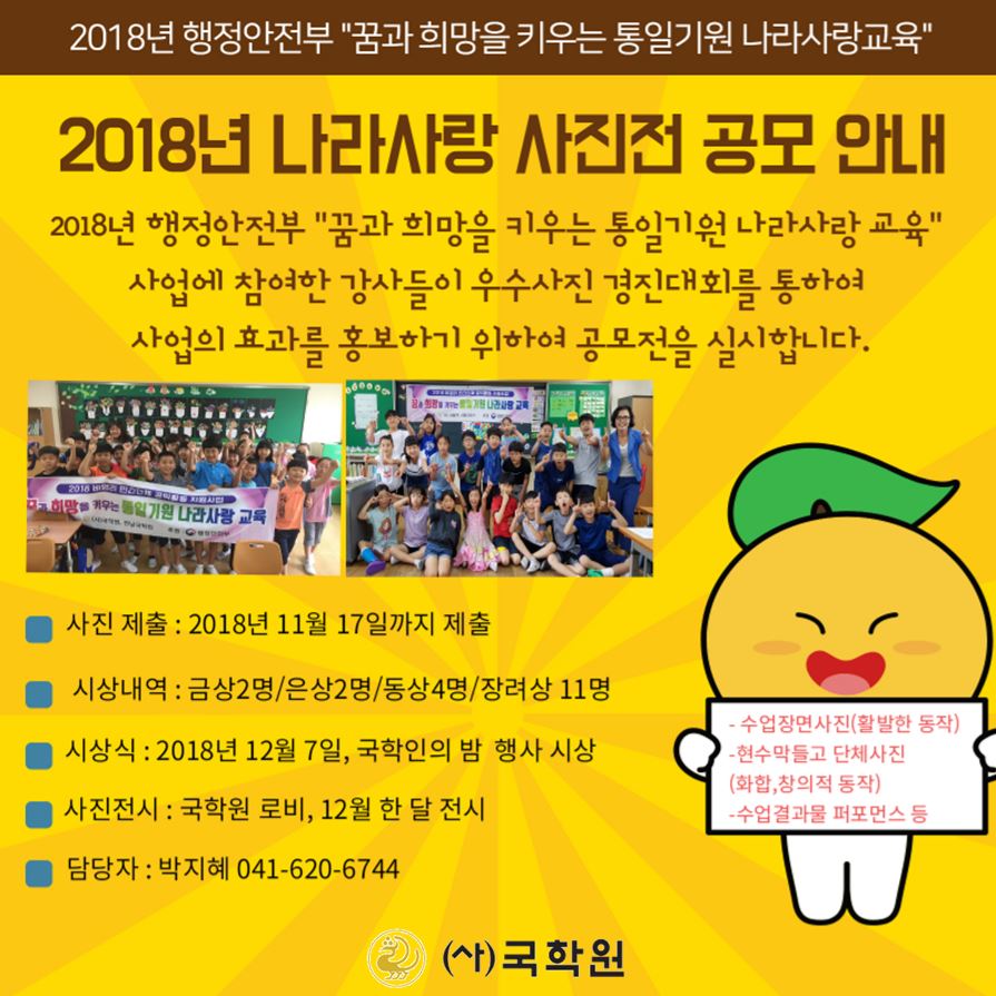 2018년 행정안전부 "꿈과 희망을 키우는 통일기원 나라사랑교육" 사진전 공모 안내