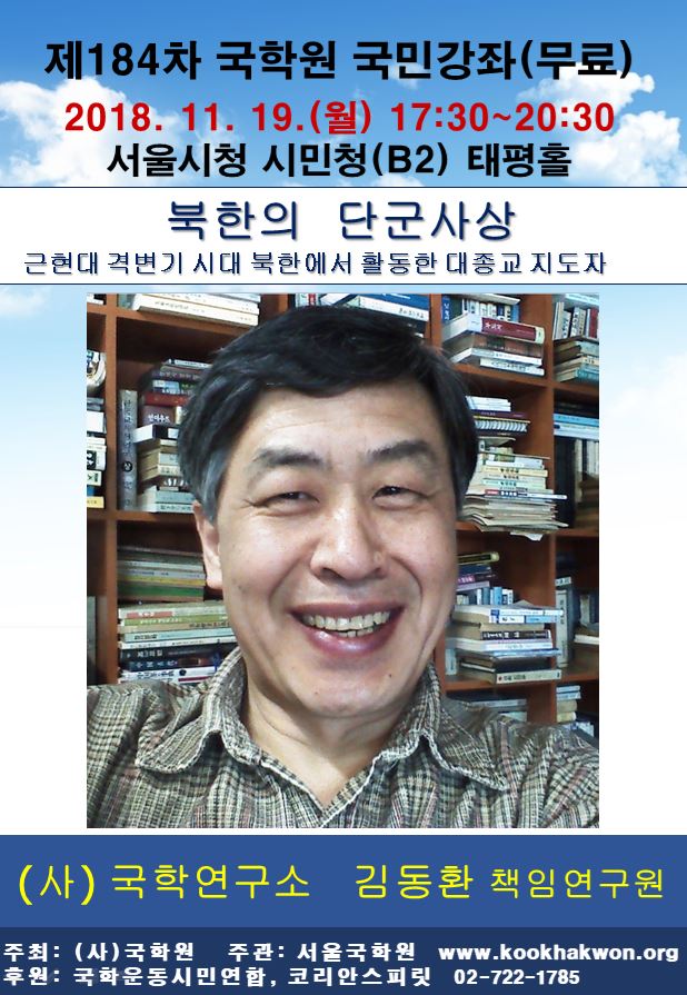 국학원에서 제184차 국민강좌를 안내드립니다.