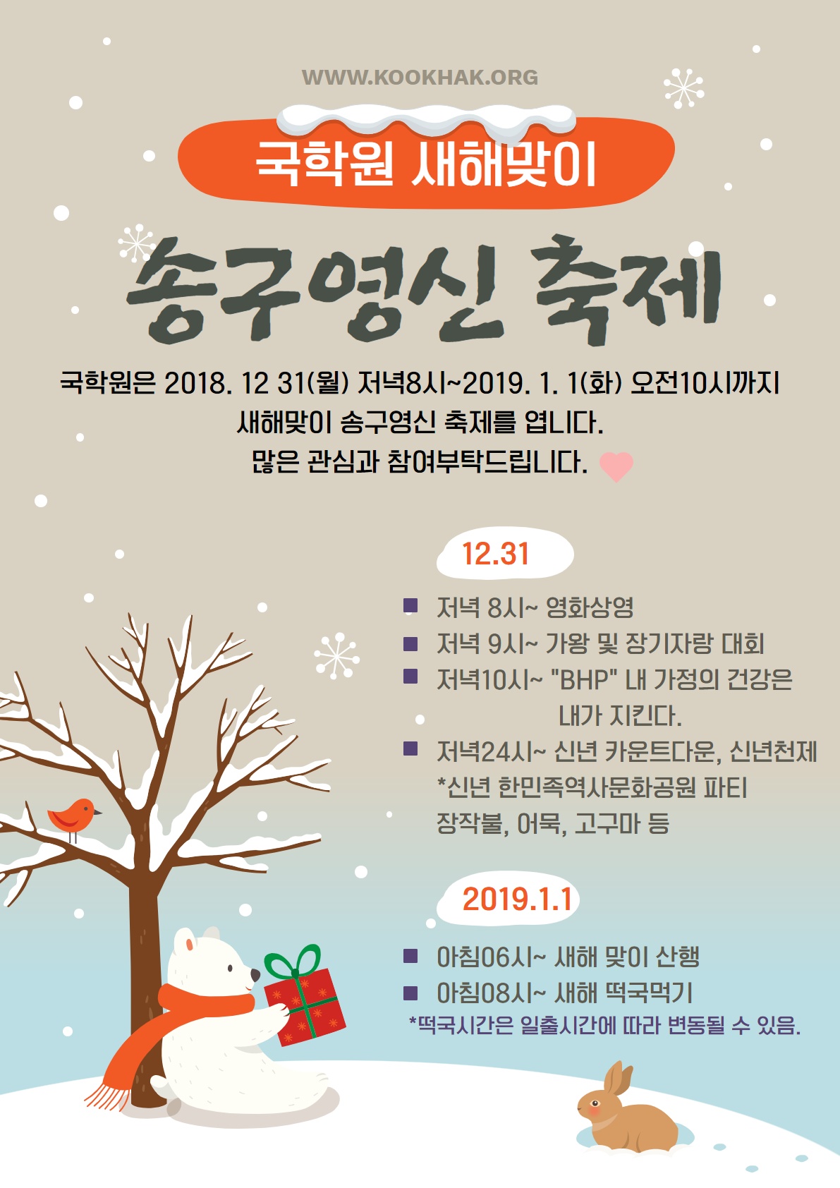 2018년을 마무리하고 2019년을 맞이하는 송구영신 축제~!!!함께 하실까요?