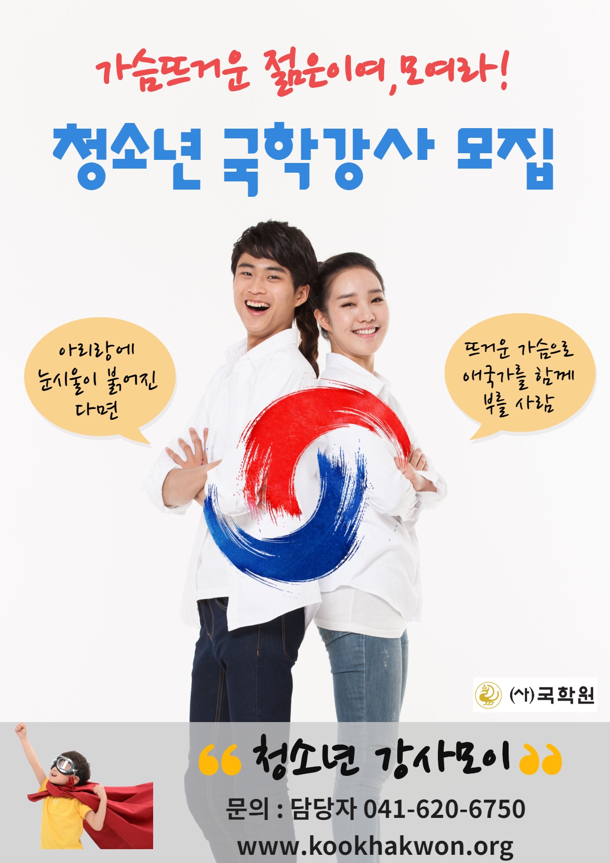 국학원에서 청소년 국학강사 모집을 안내드립니다.