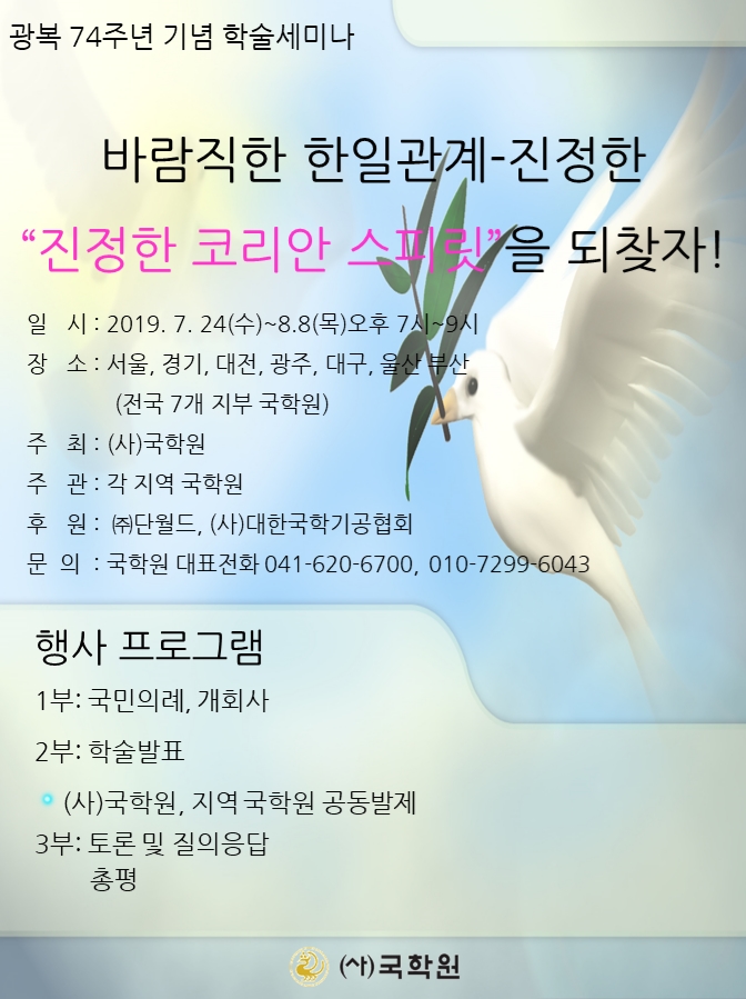 1) 서울국학원(02-722-1785) : 2019. 7. 30(화) 저녁7시~9시