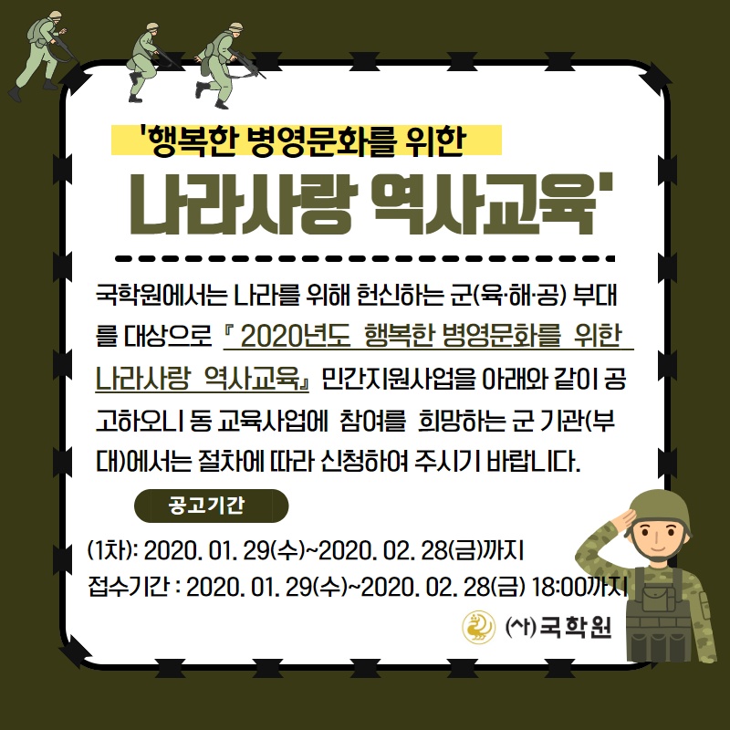 '행복한 병영문화를 위한 나라사랑 역사교육' 지원사업 1차 공고