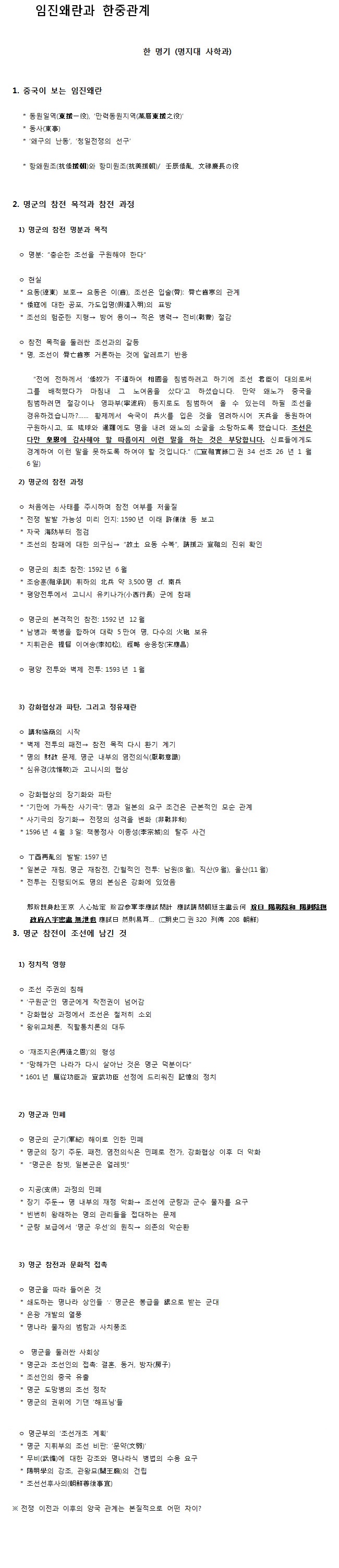 한명기 명지대 사학과 교수님이 발표한 '임진왜란과 한중관계'자료입니다.