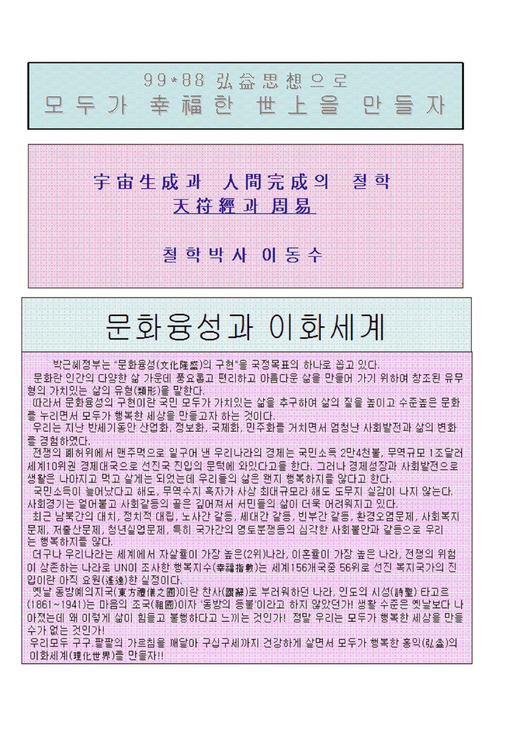 이동수원장(도산서원 수련원)의 인간완성의 철학 홍익사상 자료입니다
